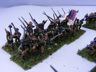Here's some images of an ACW commission we just did of a CSA brigade. All figures are Old Glory 15's and the flags are from The Flag Dude.