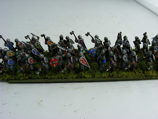 The Norman spearmen. We went with somewhat more darker, murkier colors as these are the regular infantry: